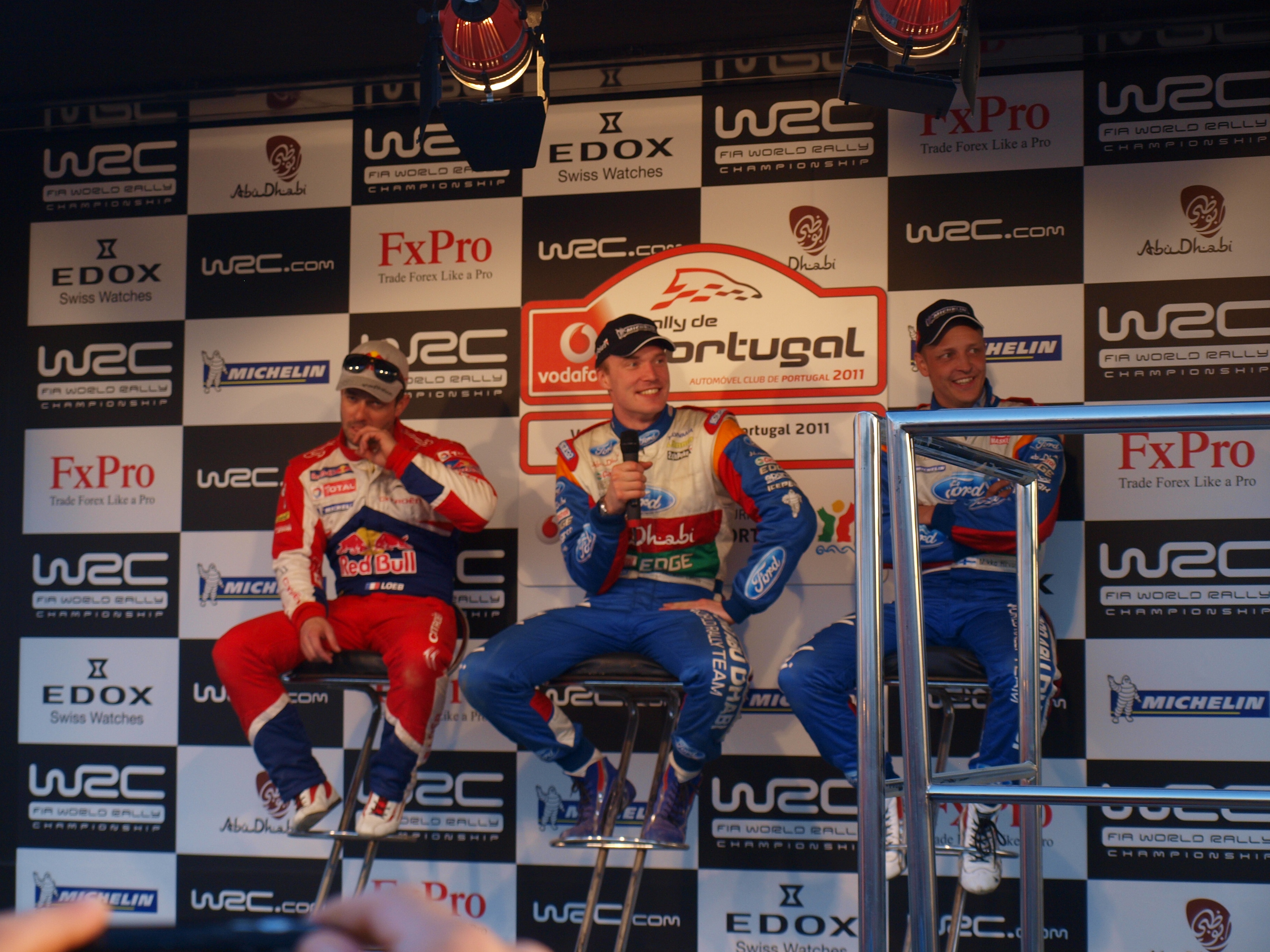 The final day was all about the Power stage, and who could take them bouns points for the drivers Championship. Loeb said in the morning that he wouldn’t risk his 2nd place and would just drive to the finish. But clearly once that helmet was on and the 31km Santana de Serra stared at him on the start line, he went for it. Watching from the big screen in the service park, You could tell he was really pushing to bag thoughs points. As many fans kept moving between the big screen and the timing screen in the service Park to see who was leading. Loeb comes through to beat Fords Jari-Matti by 1.7 seconds to claim the 3 bouns points, which could prove to be the deciding factor to the championship on the final rally of the year.