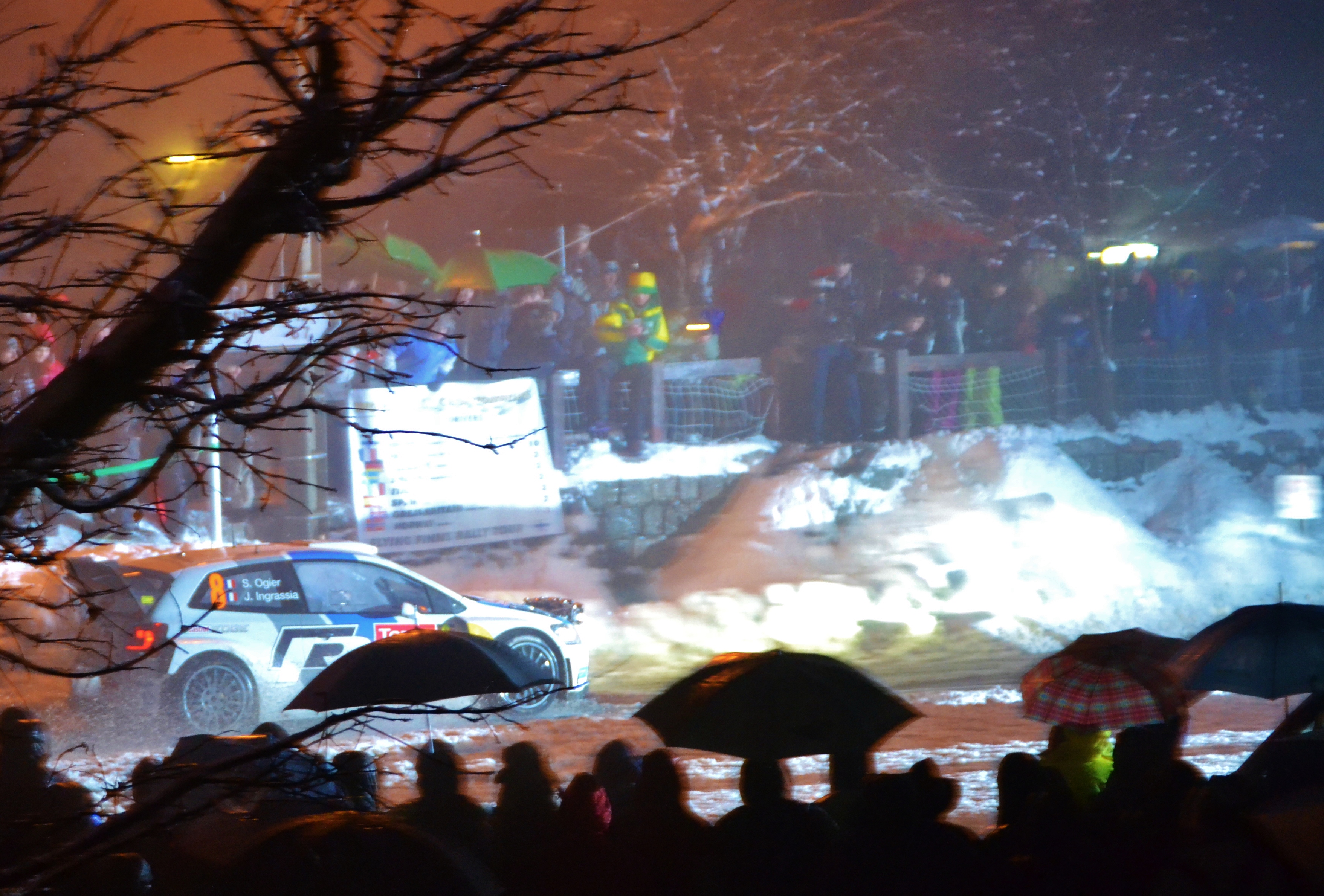 It wasn’t all glory skating for the WRC crews though. This tricky stage took out a few of the very best. Earlier on the first run, Jari Matti Latvala in the new Polo R was first to falter, crashing out in the first half of the Turini stage, followed shortly by Qatar M-Sports Evgeny Novikov and Juho Hanninen who took a wheel off on one of the small concrete walls on the edge of the road. The conditions made it a real tough test for the best drivers in the world. At the stage end Loeb said, “Undrivable, Its wet snow”. Mads Ostberg managed to make it through the first run of the Col and said at the end of the stage, “You couldn’t walk through that stage! And we try to do this with tarmac set up. Ok with studs… I’m not allowed to swear on the radio right?.. Yeah yeah, very good stage.”