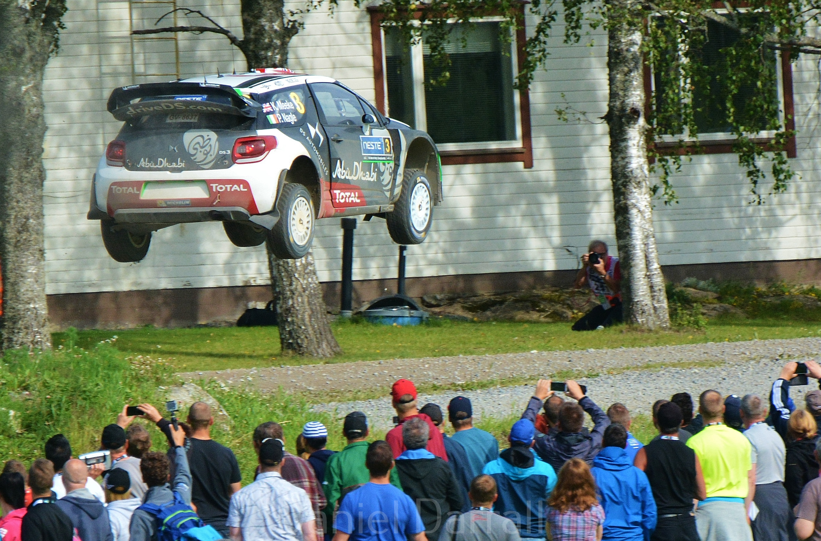 People gasp as they catch a quick glance of it in the distance. The 1.6 turbo-charged engine in full chat. Then it explodes into view! Everyone takes in a big deep breath with the look of shock on their faces, as the Blue & White Polo of Sebastien Ogier flys into view. Already launched in the air off the massive crest, the car climbs altitude in a violent attack on our senses. The engine bouncing off the rev limiter, you feel the power of the car, as the sound waves hit your chest, and ring in your ear drums. The crowds still silent, the car several feet in the air, glides past between the solid Finnish pines. I can see the fans on the other side of the road, beneath the car, such is Ogier’s height of flight. All with the same stunned, open mouth breath-taken expression on their faces. He seems to fly for miles, before gently touching back down to earth. Gravel kicks up in the air as all four wheels equally dig into the ground for traction. Ogier fires off into the next three jumps, smaller than the last. There’s a second of stunned silence, before the crowds erupt into cheers. Almost in disbelief from what they just saw. As Ogier, with incredible commitment, flicks the car sideways into the fast left hander and out of view. Here cars really do fly. This is the ‘Gravel Grand Prix’. Welcome to Rally Finland.